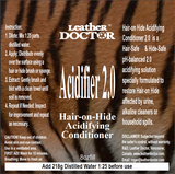 Hair-on Hide Acidifying Conditioner 2.0 by Leather Doctor® is a Hair-Safe™ & Hide-Safe™ pH-balanced 2.0 acidifying solution specially formulated to restore Hair-on Hide affected by urine, alkaline cleaners or household spills.