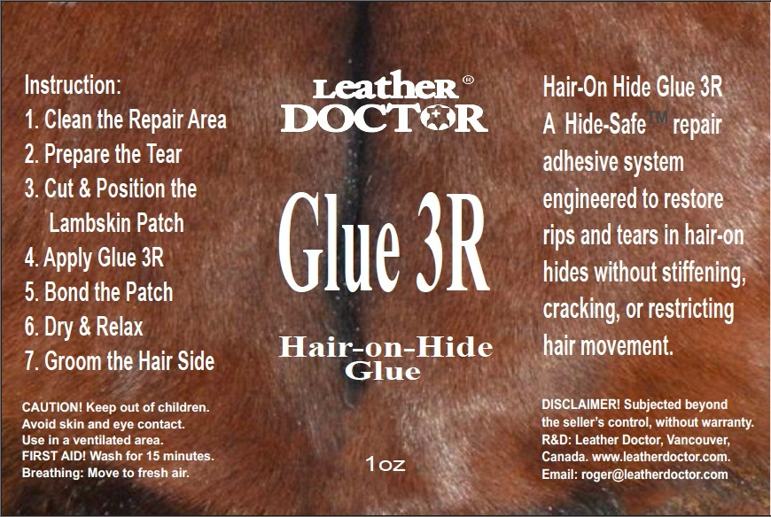 Hair-On Hide Glue 3R by Leather Doctor® is a Hide-Safe™ repair adhesive system engineered to restore rips and tears in hair-on hides without stiffening, cracking, or restricting hair movement.