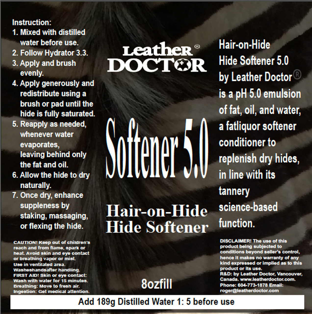 Hair-on-Hide Hide Softener 5.0 by Leather Doctor® is a pH 5.0 emulsion of fat, oil, and water, a fatliquor softener conditioner to replenish dry leather hides, in line with its tannery science-based function.