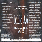 Hair on Hide Mold Killer 3.6 by Leather Doctor is a Hair-Safe™ Hide-Safe™ pH-balanced fungicide for killing, deodorizing, disinfecting, and controlling long-term mold growth activities.