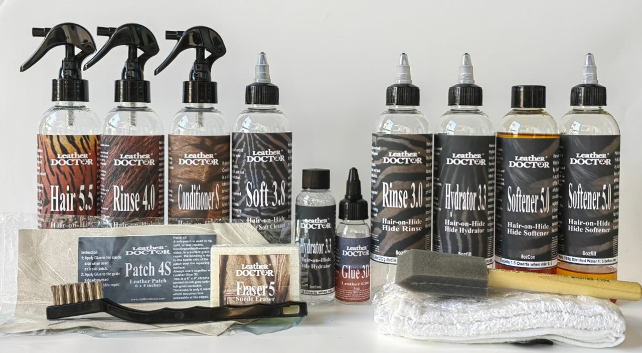 Leather Doctor® Kit H8 is designed with tannery-based science to reverse these effects and extend the life of hair-on-hide rugs.