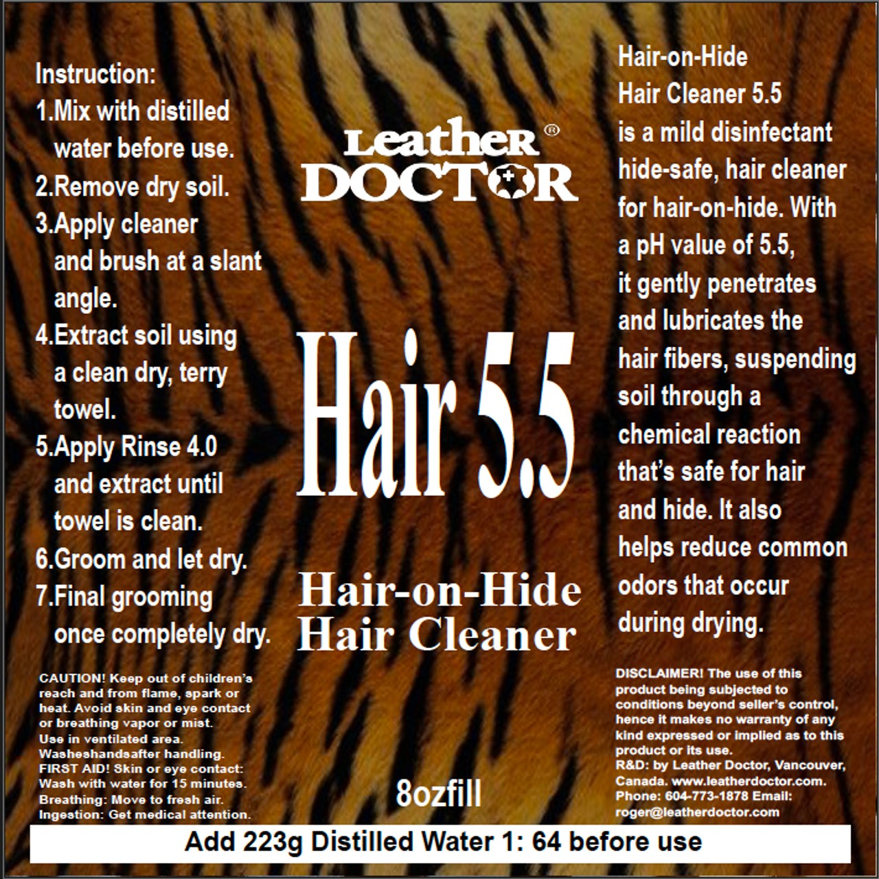 - Use Hair 5.5 by Leather Doctor® for a gentle, safe, and odor-neutralizing clean that preserves hair-on hide's beauty and integrity—especially when paired with matching rinse and conditioner in a full care routine.