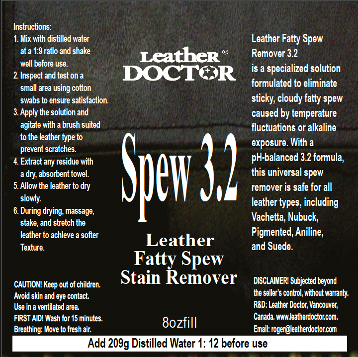 Leather Fatty Spew Remover 3.2 by Leather Doctor is a specialized Leather-Safe™ pH-balanced 3.2 solution formulated to eliminate sticky, cloudy fatty spew (or fat bloom) caused by temperature fluctuations or alkaline exposure. This universal spew remover is safe for all leather types, including Vachetta, Nubuck, Saddlery, Pigmented, Aniline, and Suede.
