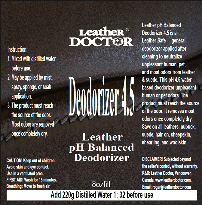 Leather pH Balanced Deodorizer 4.5 by Leather Doctor® is a Leather-Safe™ general deodorizer applied after cleaning to neutralize unpleasant human, pet, and most odors from leather & suede.