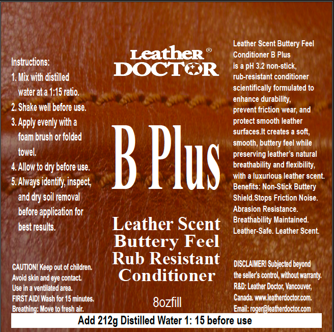 Leather Scent Buttery Feel Conditioner B Plus by Leather Doctor® is a Leather-Safe™ pH balanced, 3.2 buttery feel, non-stick, rub-resistant conditioner scientifically formulated to enhance durability, prevent friction wear, and protect all smooth leather surfaces.