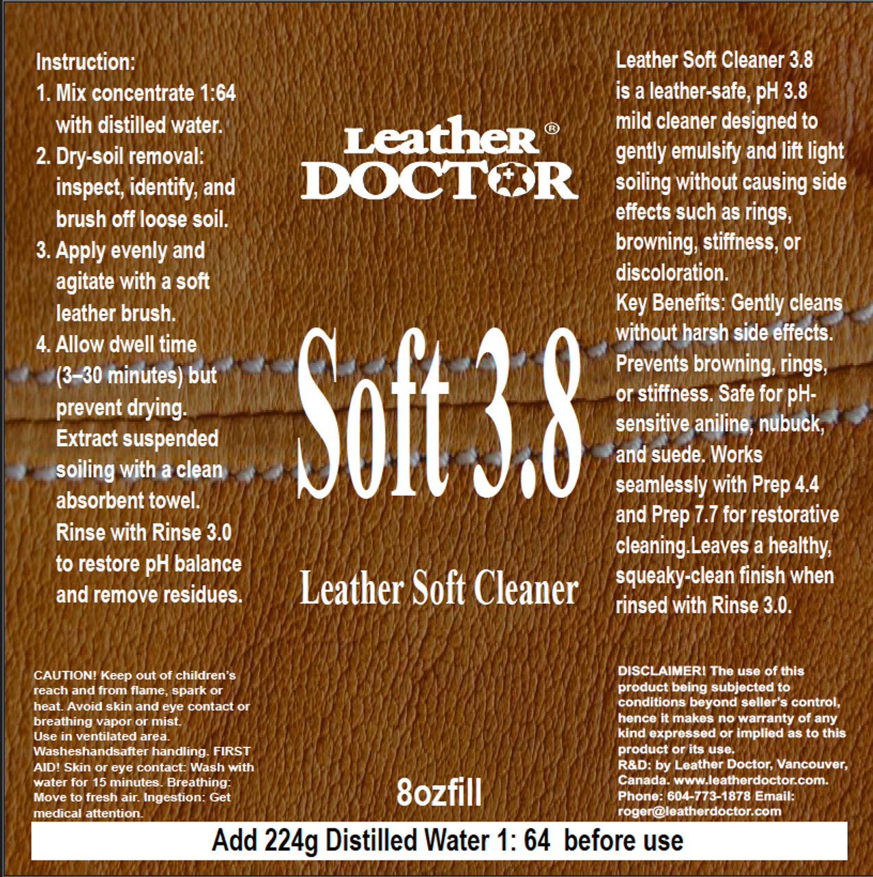 - Formulated within the Leather-Safe™ System, Soft 3.8 ensures a “just right” balance—strong enough to remove everyday soiling while gentle enough to preserve the leather’s structure, softness, and finish integrity.