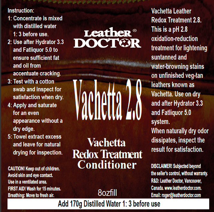 Vachetta Leather Redox Treatment Conditioner 2.8 by Leather Doctor is a Redox (oxidation-reduction reactor) conditioner for lightening browning, suntanning, and water-spotting stains.